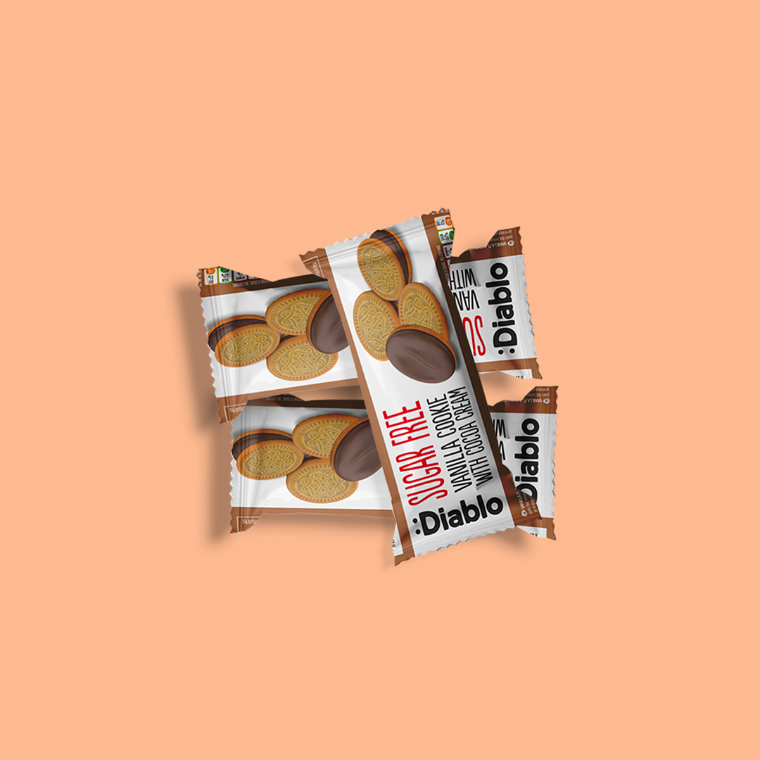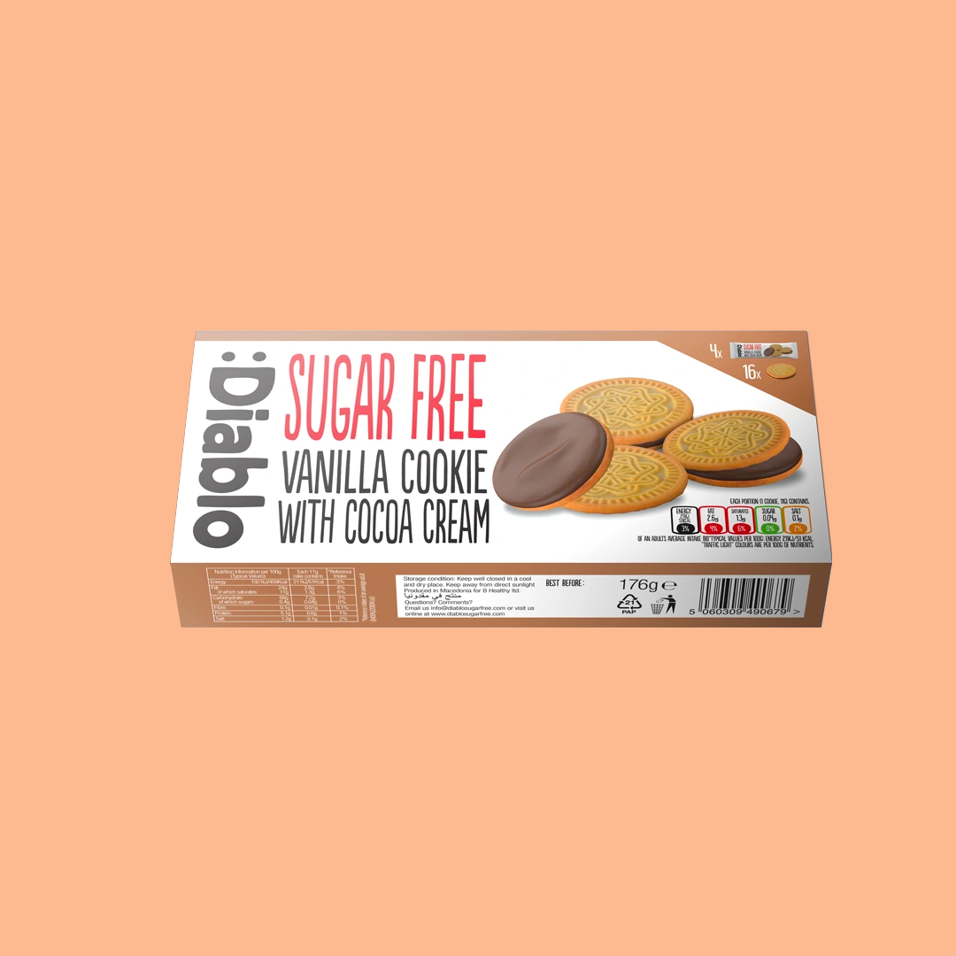 • Cookies sandwich à la vanille fourrés à la crème cacao (176g) sans sucre
